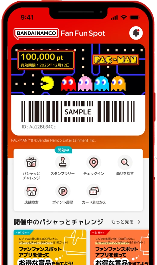 「バンダイナムコ Fan Fun Spot 」アプリをダウンロードしてください。